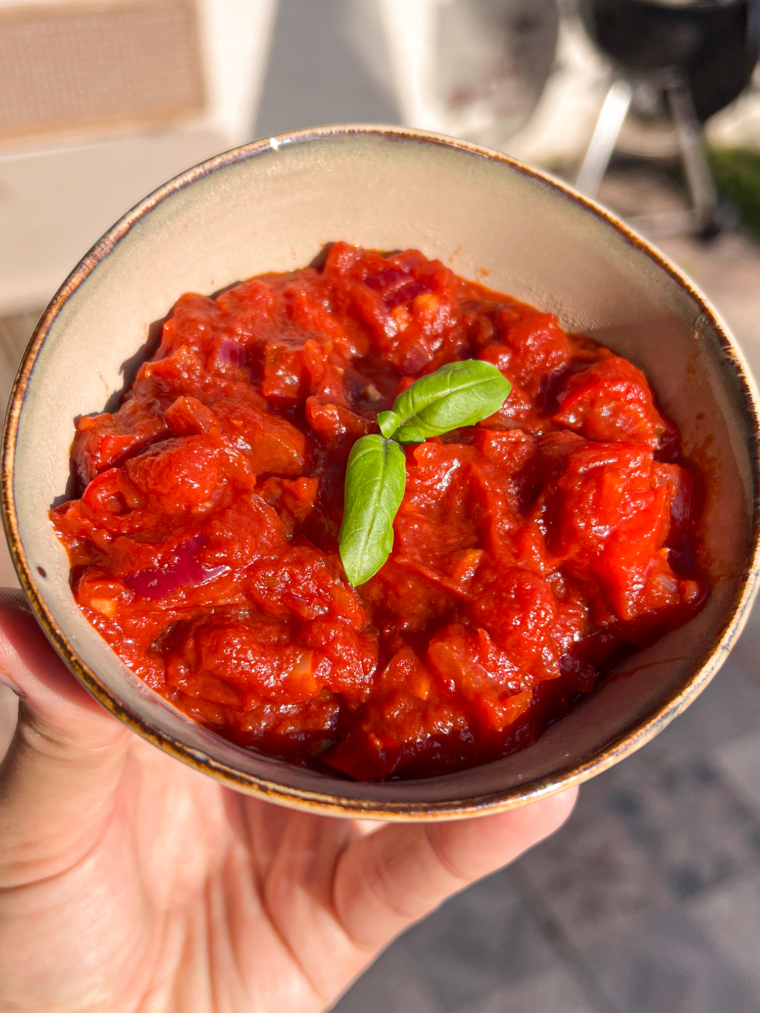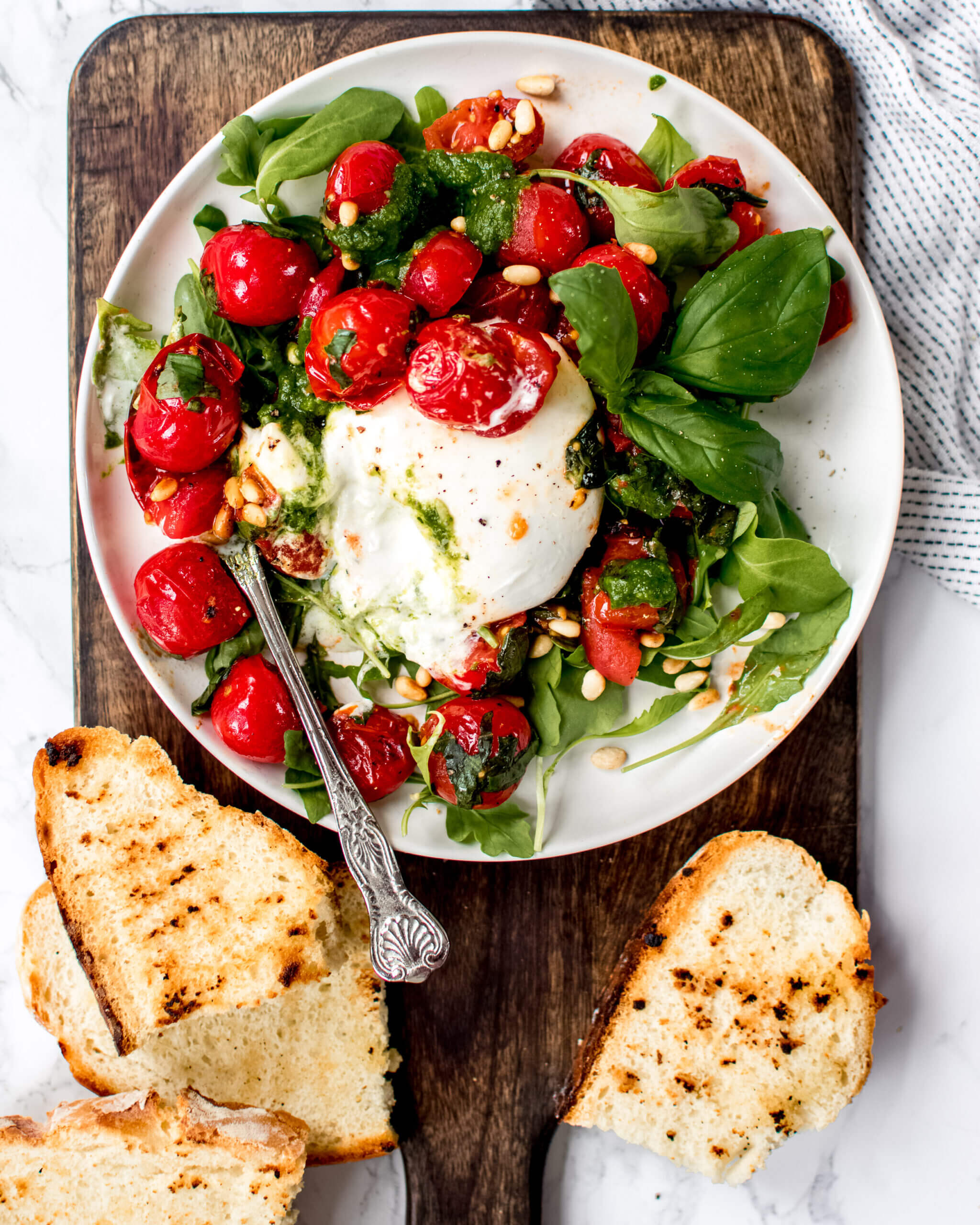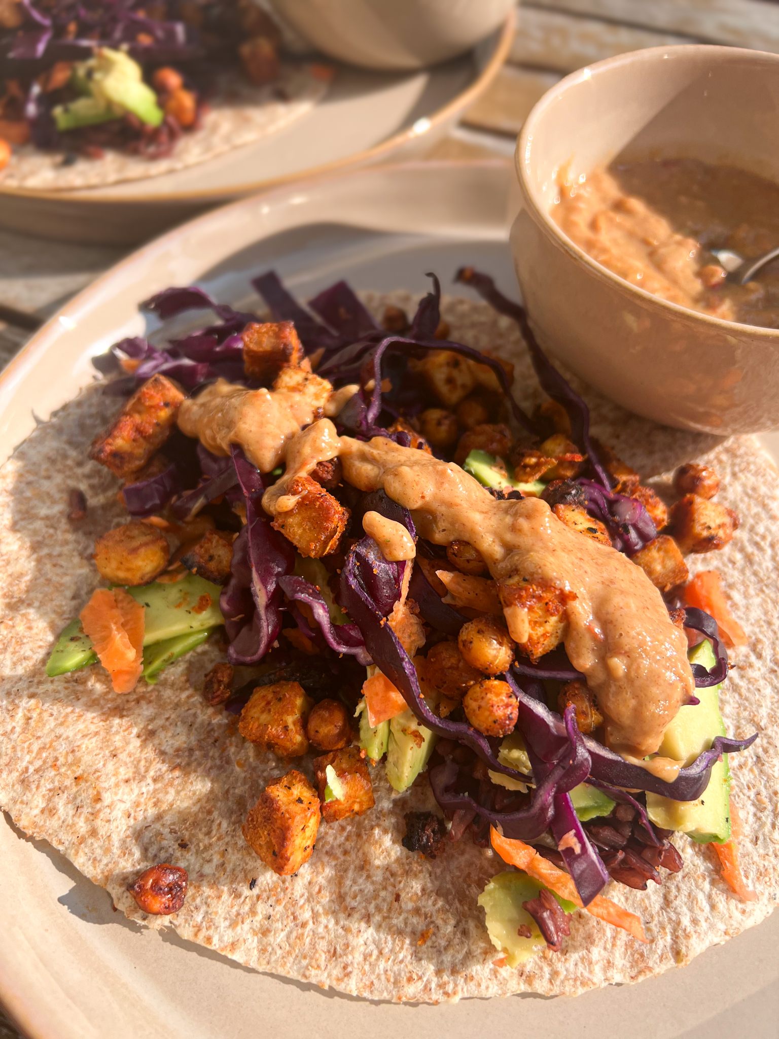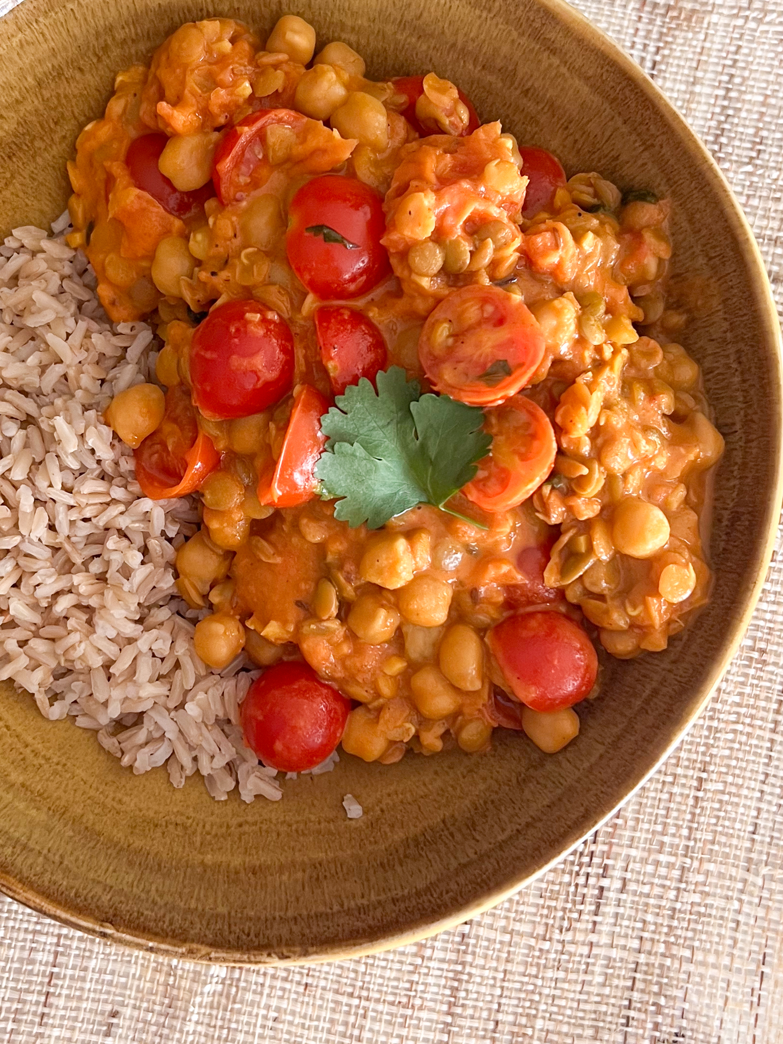 Krokante citroen feta met gekruide kikkererwten en basilicum orzo