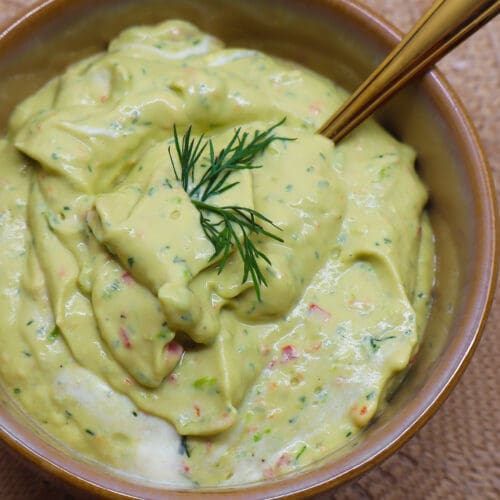 Bereid alle ingredienten voor zoals in de ingredienten lijst beschreven en voeg toe aan de keukenmachine of blender. Mix tot een glad mengels en garneer zo nodig nog met wat verse dille. Geniet!