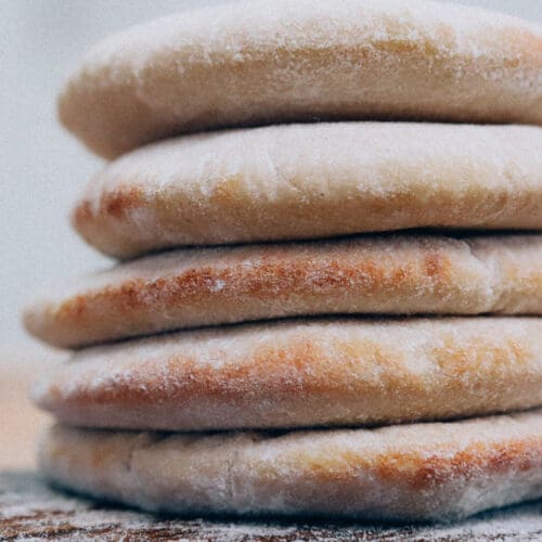 Verwarm de oven voor op 220 graden en bak de pita’s zo’n 12 minuten tot deze goudbruin zijn.